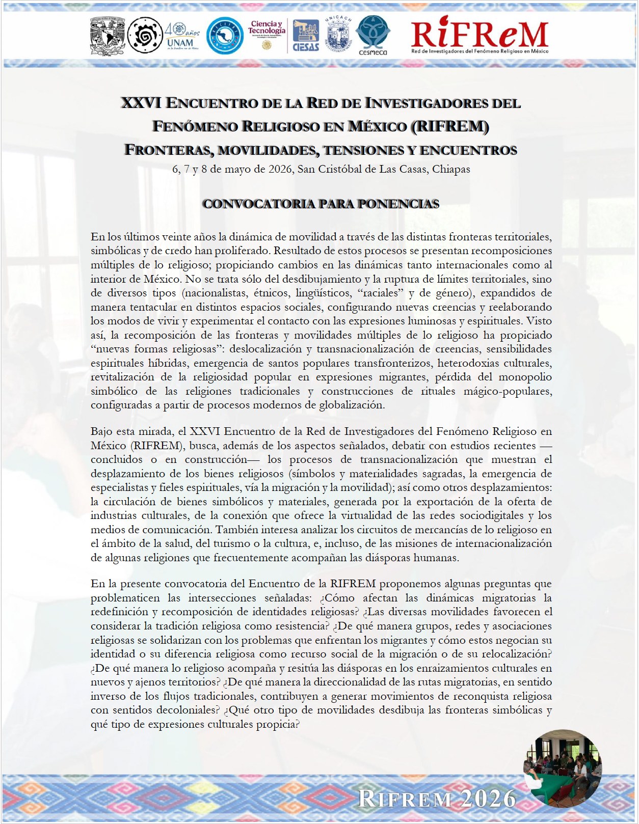 23 Ene XXVI Encuentro de la Red de Investigadores del Fenómeno Religioso en México (RIFREM) View Details